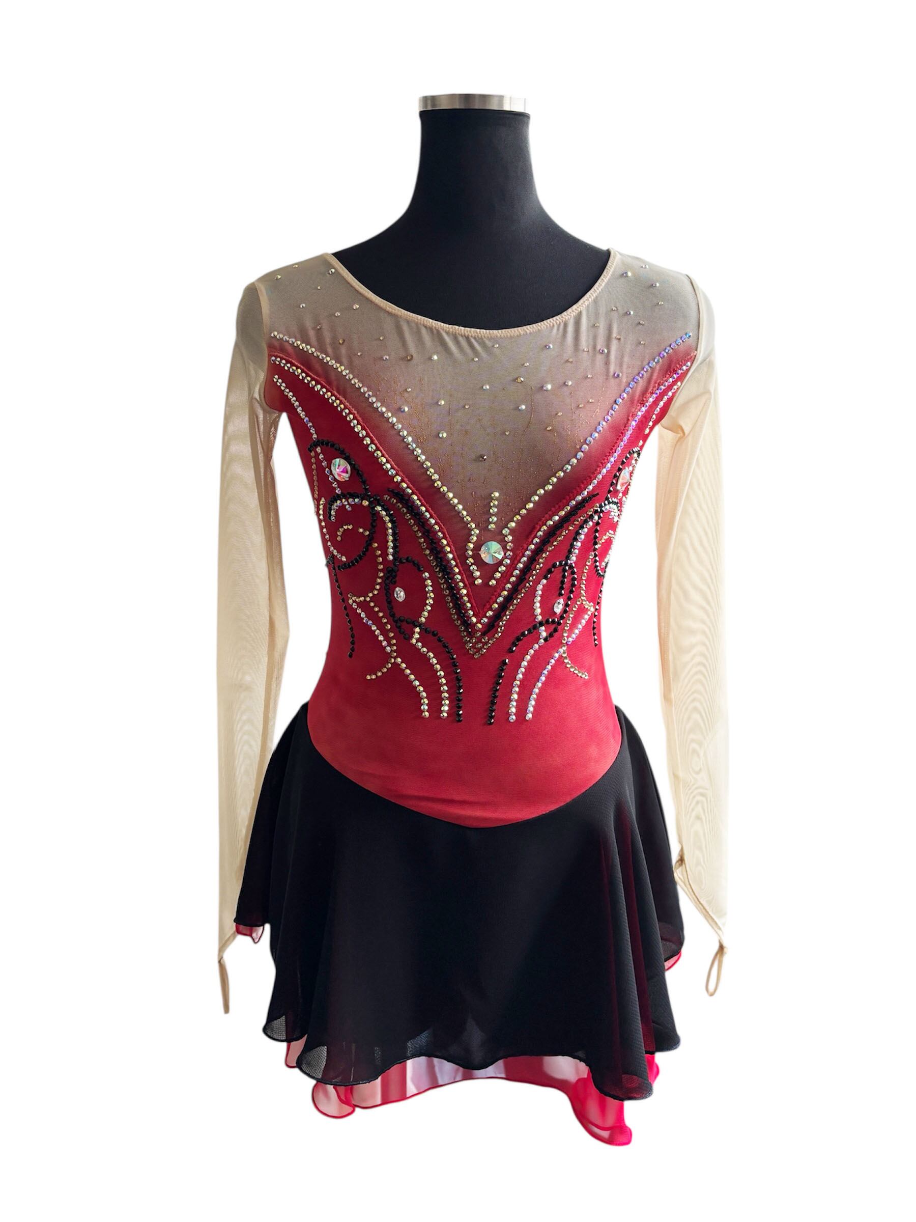 ◆「ラテンパッション」は、ラテン系の情熱を心に秘めたフィギュアスケート衣装です!赤の旋律が、あなたのパフォーマンスを一層引き立てます。