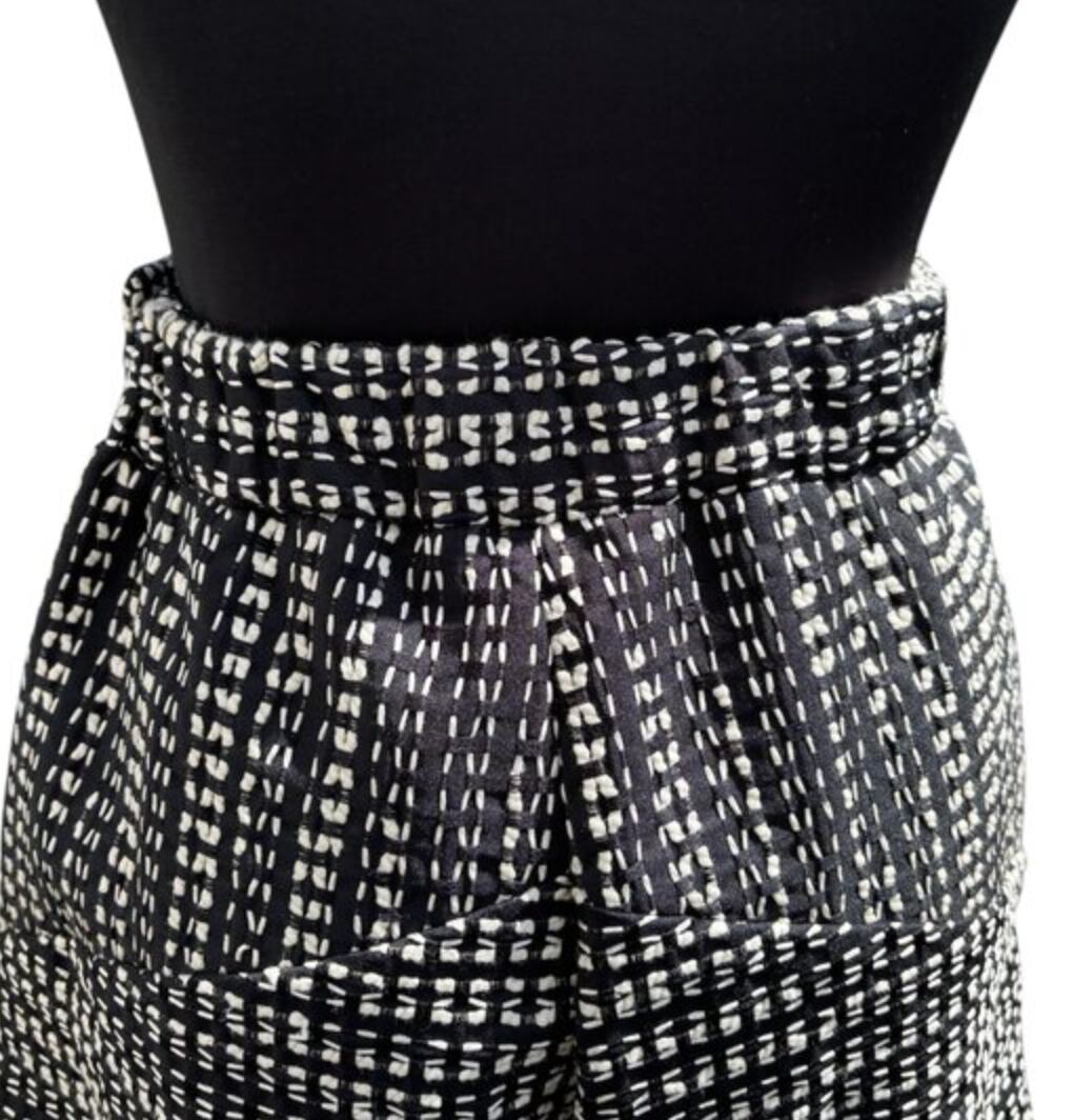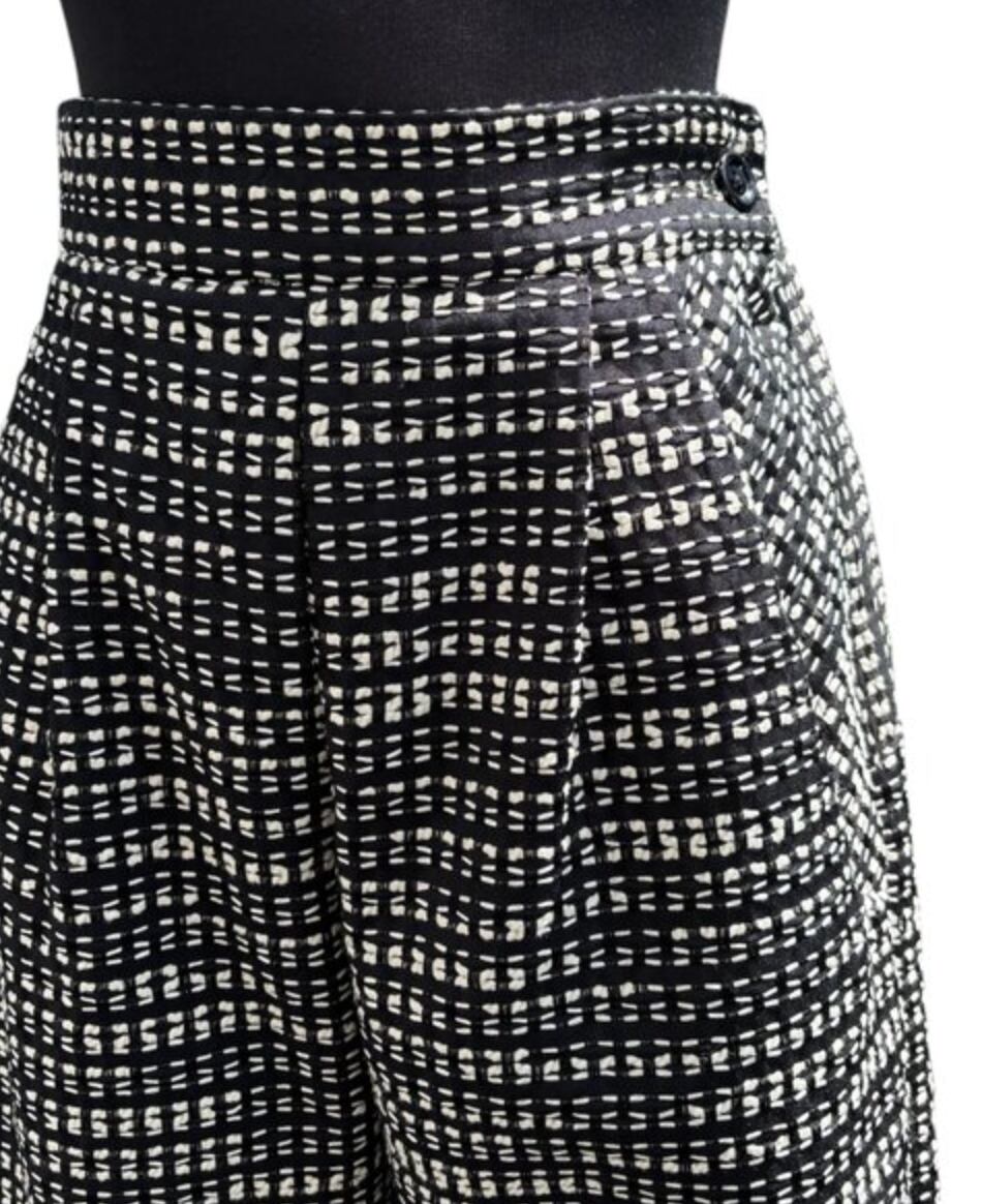 ユニークな格子状の織柄生地で仕立てた、世界にひとつのバルーンパンツ。