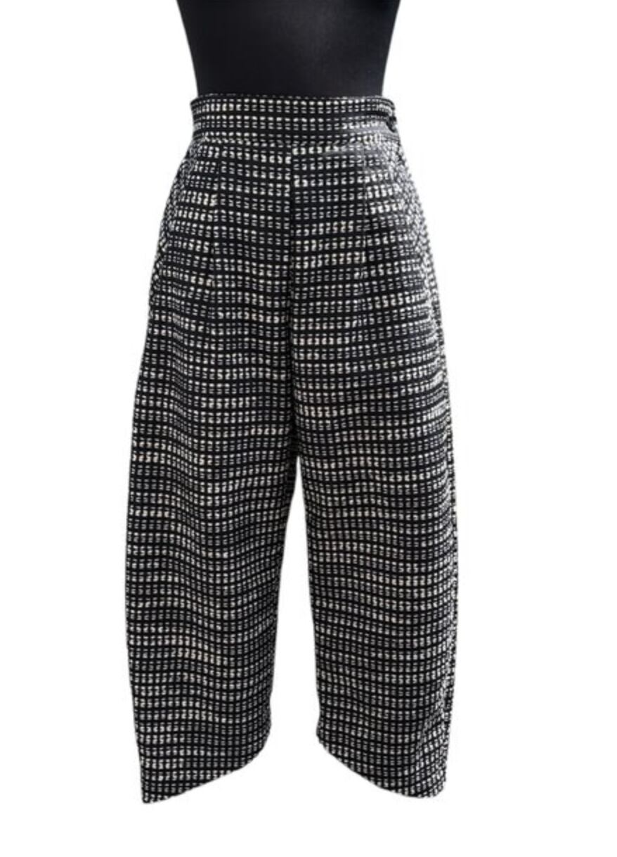 モノトーン格子柄バルーンパンツ|立体シルエット|大人の個性派デザイン