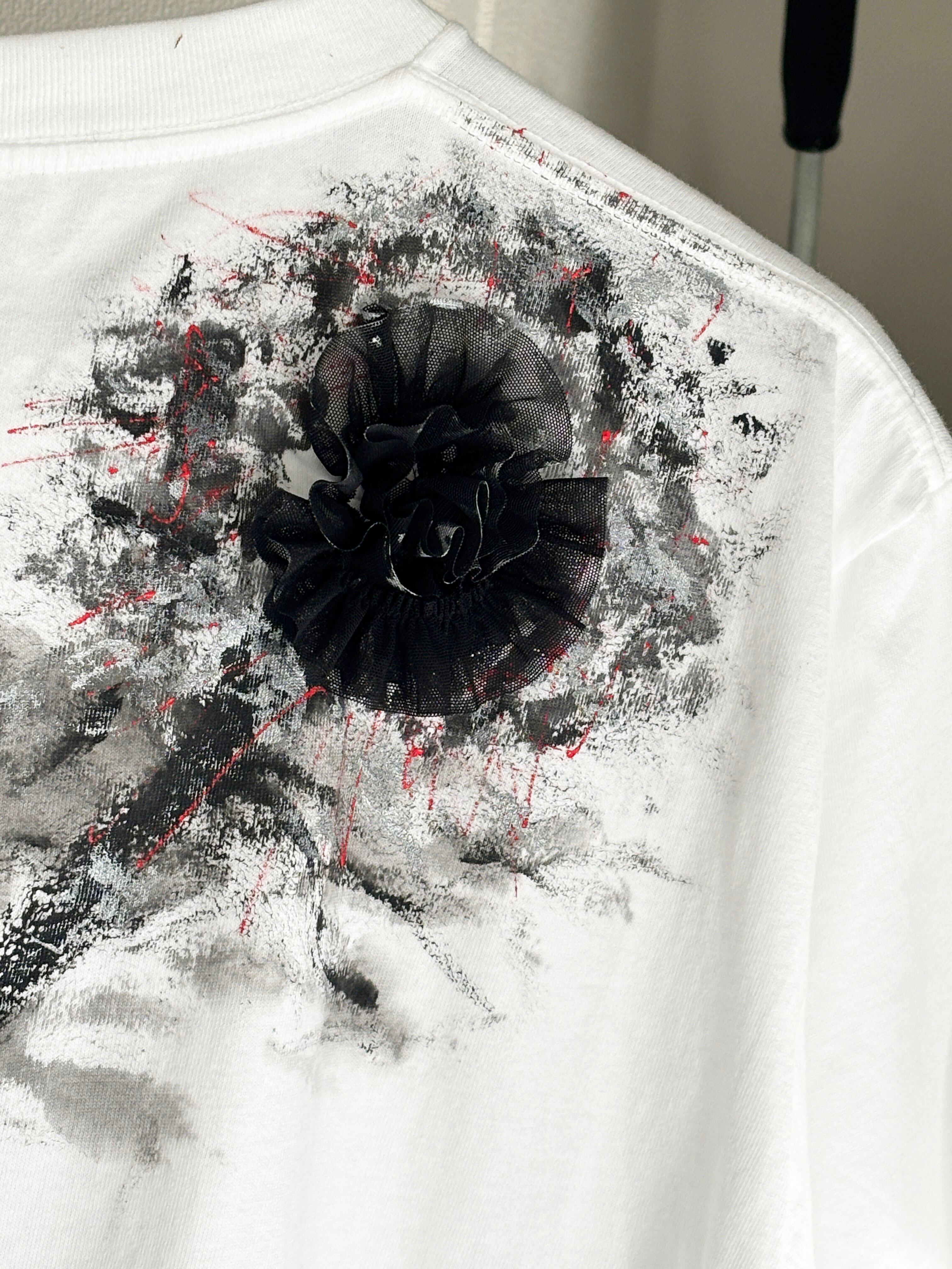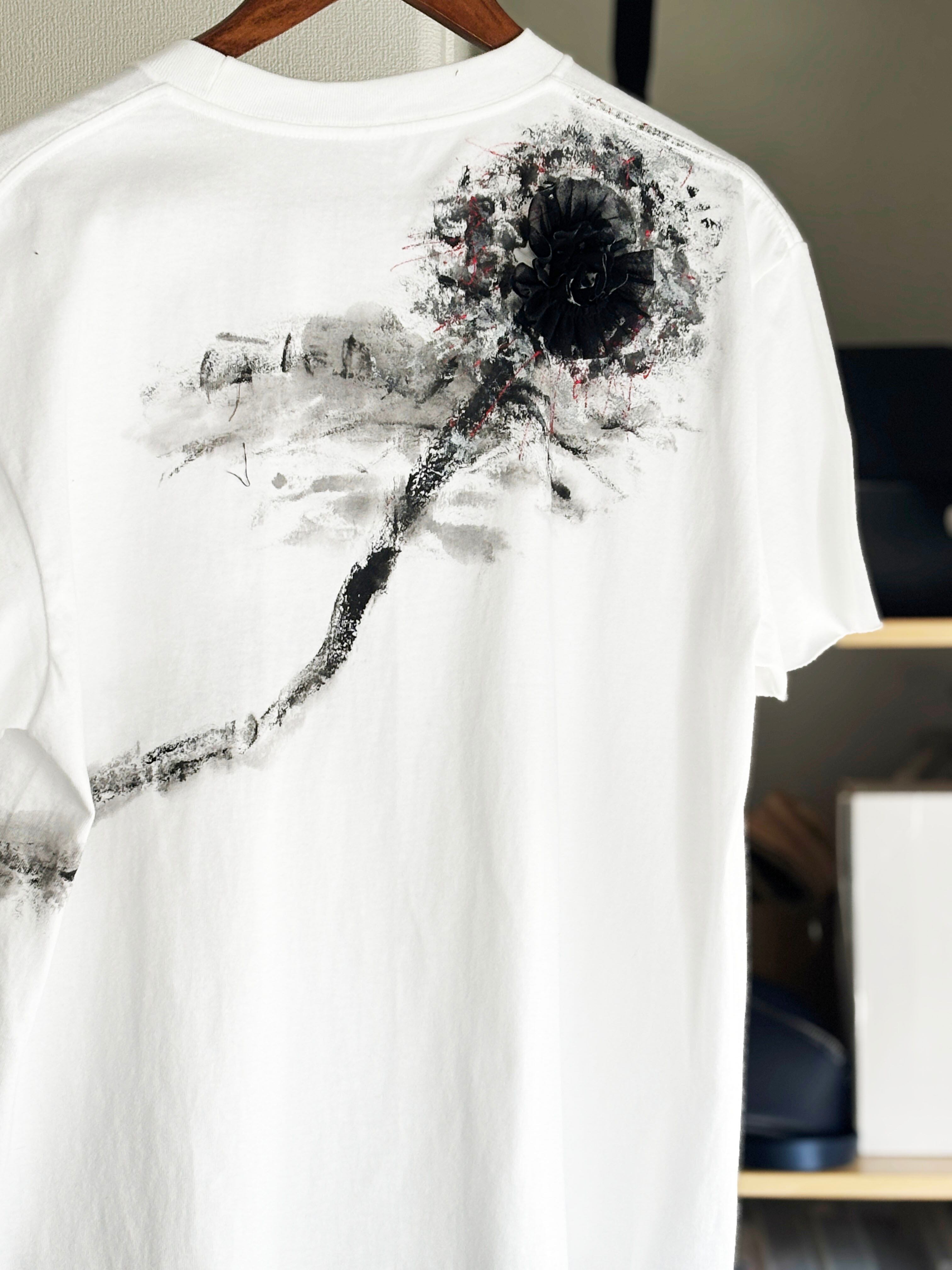 Hand-Painted Art T-shirt | 「スカーレット」の情熱を纏う。薔薇の立体装飾ハンドペイントT