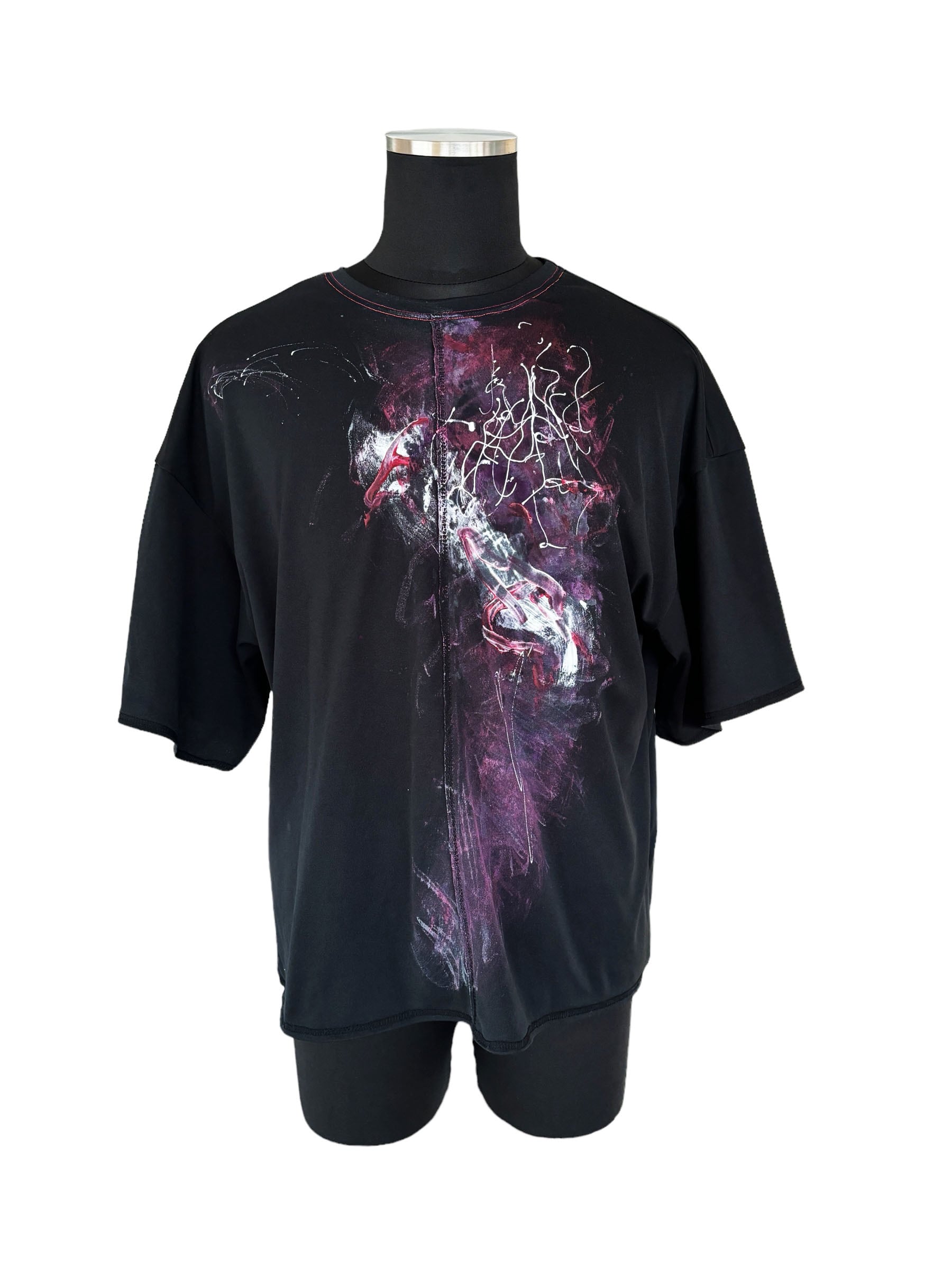 【一点物】Andromeda - 混沌から生まれる光。ペイント&刺繍フリンジTシャツ(受注オーダー可)
