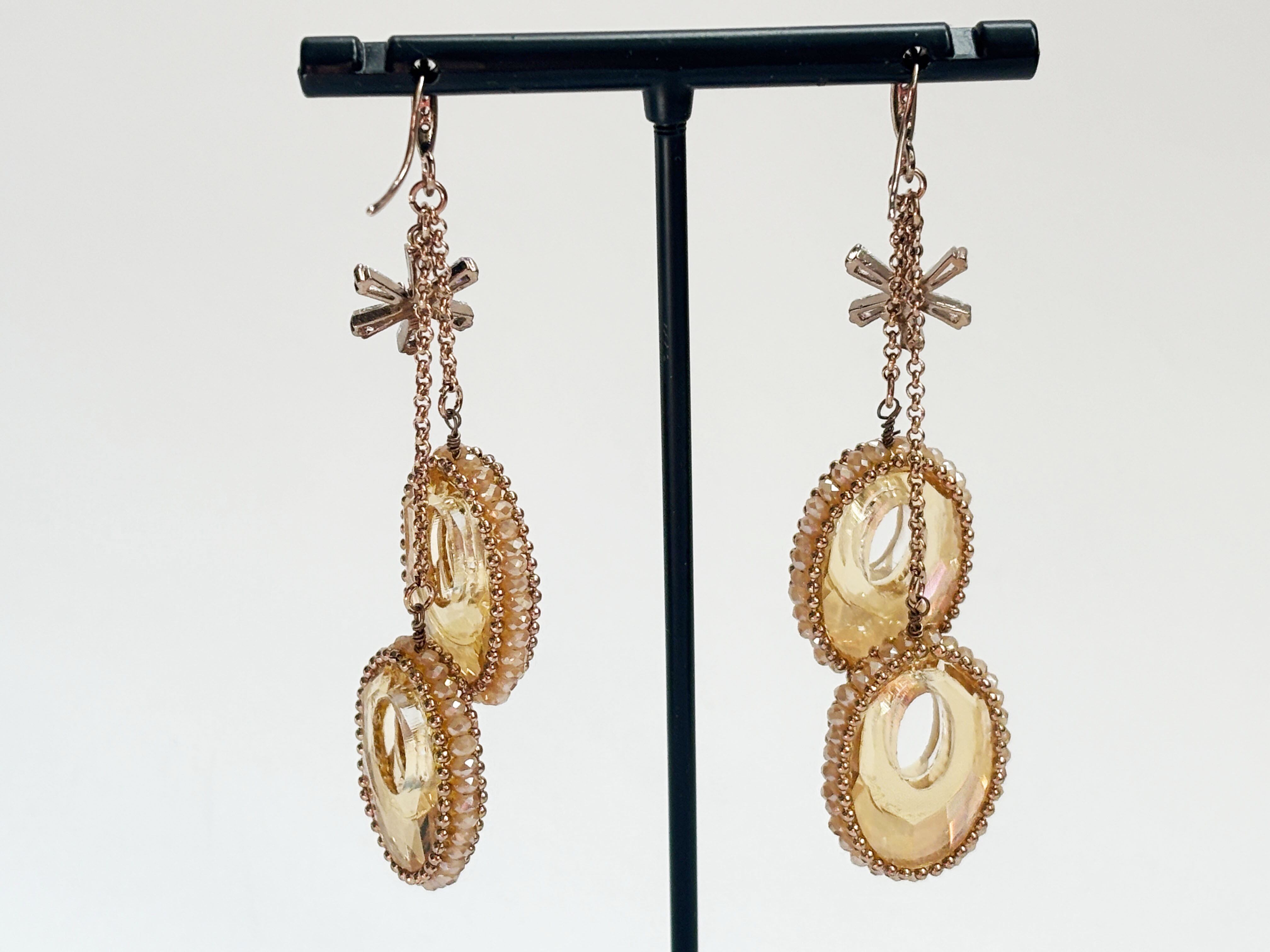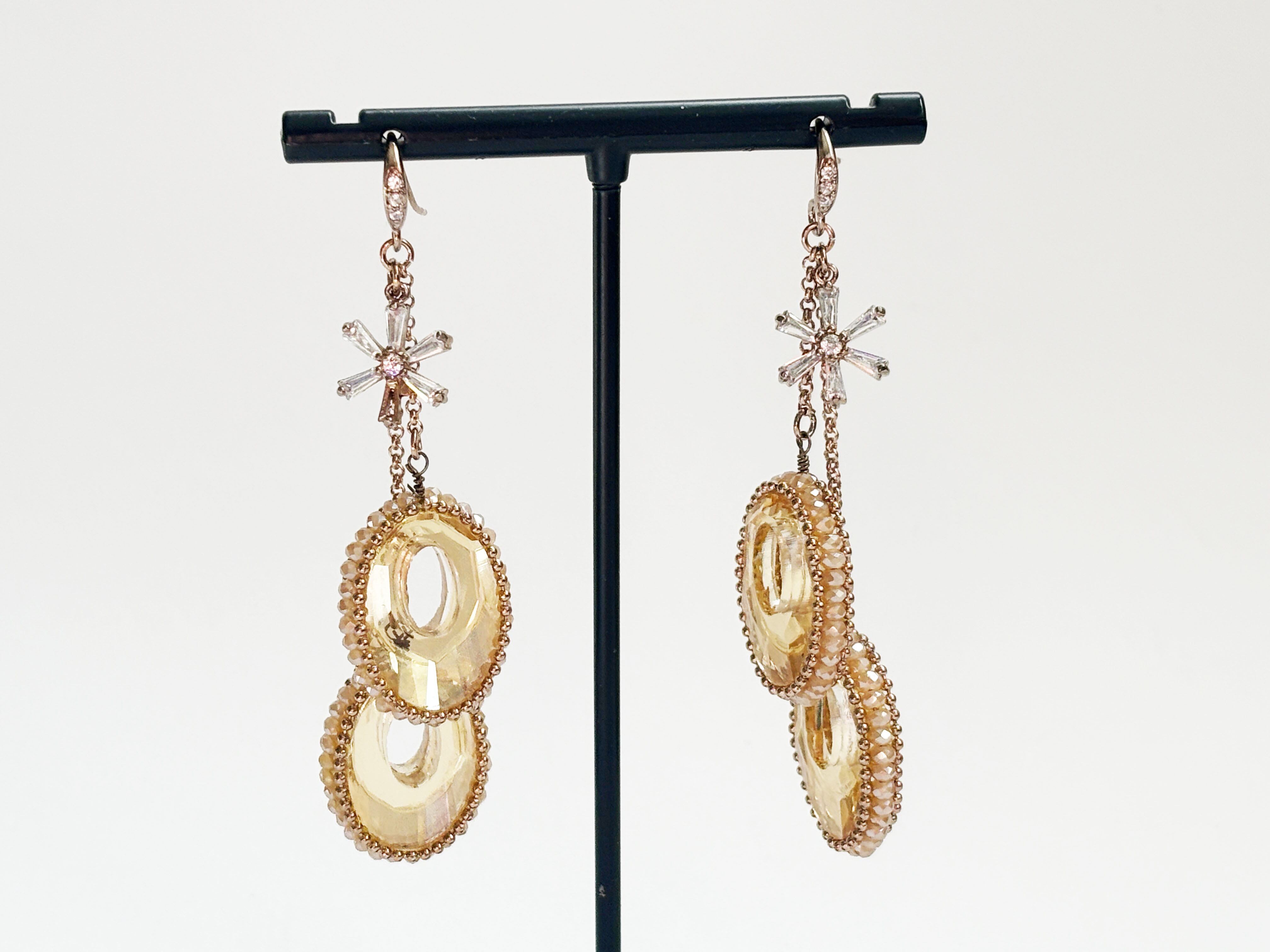 衣装デザイナーが、その「緻密な装飾美」と「内側から溢れるようなゴールドの輝き」に惚れ込みセレクトした、主役級のロングピアスです。